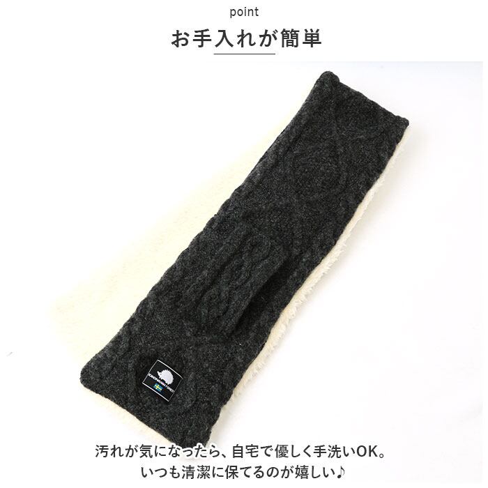 ・3つの混紡素材で仕上げ、中綿入りでボリューム感アップ。肌に直接当たる裏面はボア素材で、付け心地軽やか。