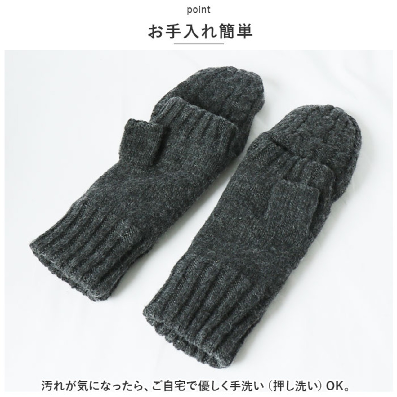 ・ミトンカバーを外せば4本指が出せて、スマホの操作がラクラク!ミトンカバーを使わない時はボタンで留められるので、スッキリとしたシルエットに。
