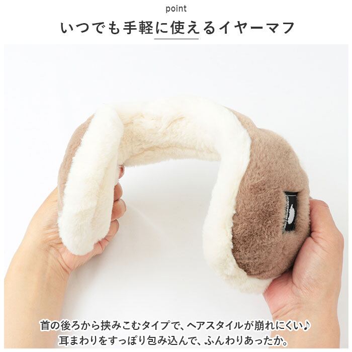 ・首の後ろから挟みこむタイプで、ヘアスタイルが崩れにくい♪耳まわりをすっぽり包み込んで、ふんわりあったか。