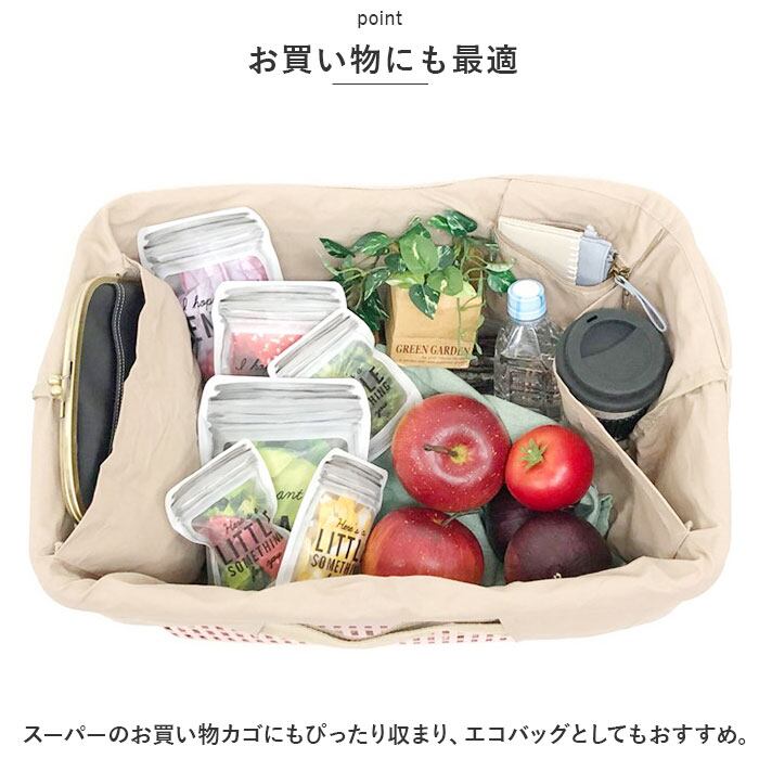 ・スーパーのお買い物カゴにもぴったり収まり、エコバッグとしてもおすすめ。