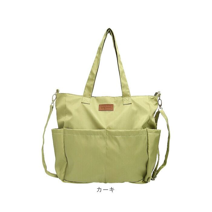 2WAY ナイロン トートバッグ 通販 トートバック トート 手提げ ショルダーバッグ ショルダーバック ショルダー 取り外し可能 長さ調整可能 ポケット 仕切り 多い 収納力 ファスナー ワッペン 軽量 軽い シンプル 横型 横 通勤 通学