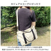 ・ナチュラルな風合いのコットンキャンバス素材を使用。軽量で丈夫なので、ガシガシ使える!マザーズバッグとしてもおすすめ♪