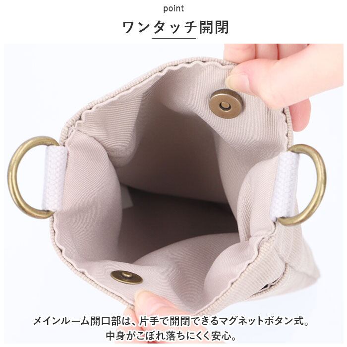 ・メインルーム開口部は、片手で開閉できるマグネットボタン式。中身がこぼれ落ちにくく安心。