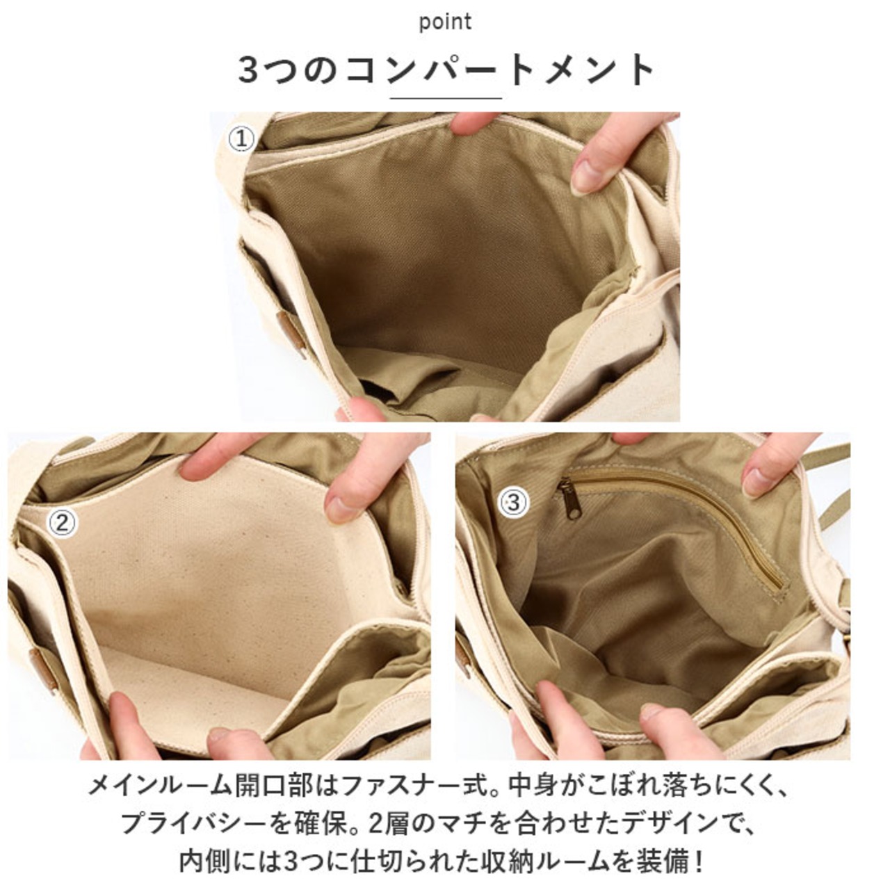・2層のマチを合わせたデザインで、内側には3つに仕切られた収納ルームを装備!小物の整理整頓がラクラク。