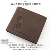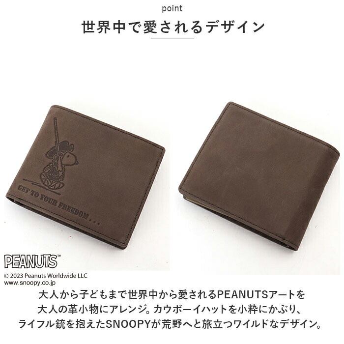 ・大人から子どもまで世界中から愛されるPEANUTSアートを大人の革小物にアレンジ。カウボーイハットを小粋にかぶり、ライフル銃を抱えたSNOOPYが荒野へと旅立つワイルドなデザイン。