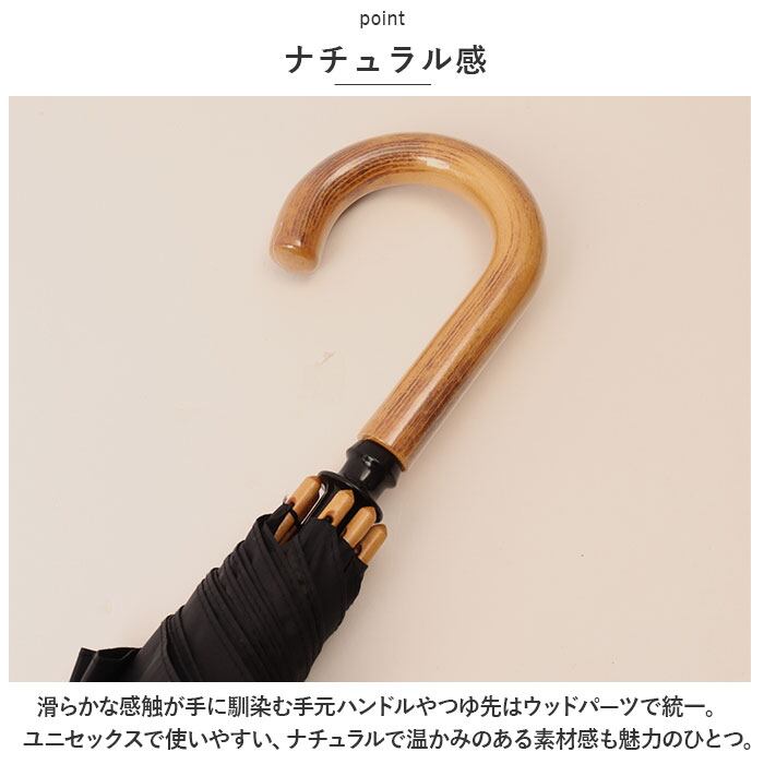 ・滑らかな感触が手に馴染む手元ハンドルやつゆ先はウッドパーツで統一。ユニセックスで使いやすい、ナチュラルで温かみのある素材感も魅力のひとつ。