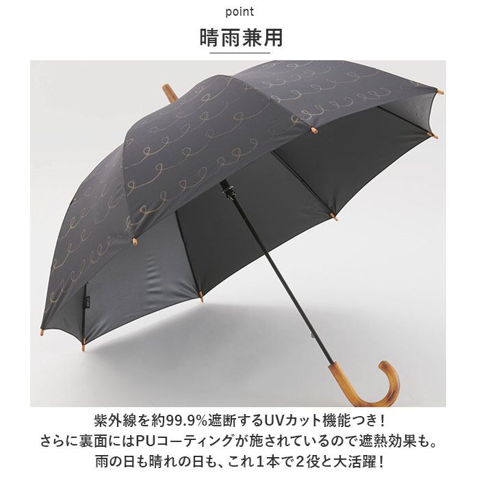 ・紫外線を約99.9%遮断するUVカット機能つき!さらに裏面にはPUコーティングが施されているので遮熱効果も。雨の日も晴れの日も、これ1本で2役と大活躍!