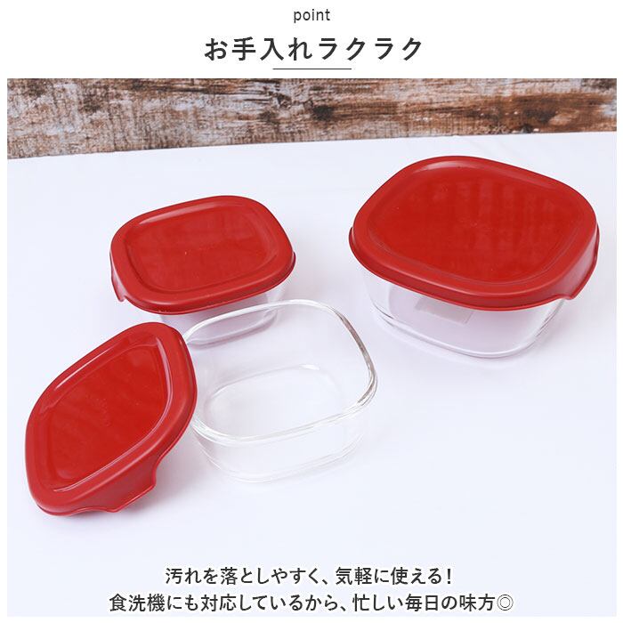 ・下ごしらえから調理、保存と幅広く活躍する耐熱ガラス製。電子レンジでの温めや、フタを外してオーブンの使用もできる優れモノ◎安心の日本製。