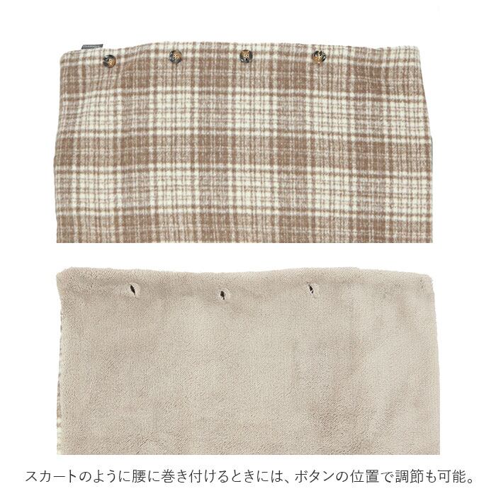 ・ひざ掛けとしてはもちろん、肩から羽織ってポンチョ風に。腰に巻いてボタンを留めればスカートのように身に纏える、シーンに合わせて使える3WAY仕様。