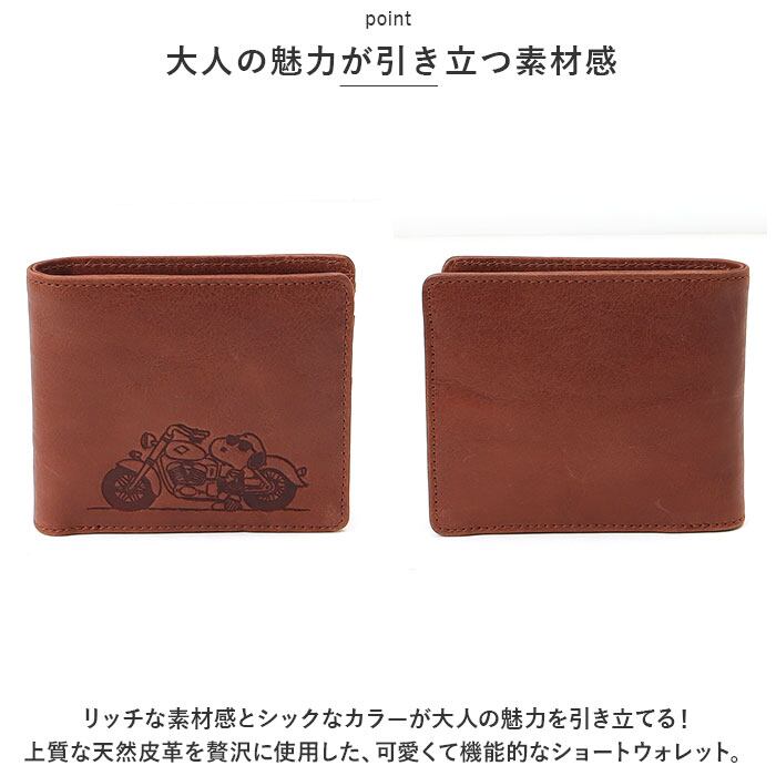 ・世界中から愛されるPEANUTSアートを大人の革小物にアレンジ。サングラスを掛けてバイクの前でポーズを決める、SNOOPY扮する「JOE COOL」を型押しした遊び心あふれるデザイン。