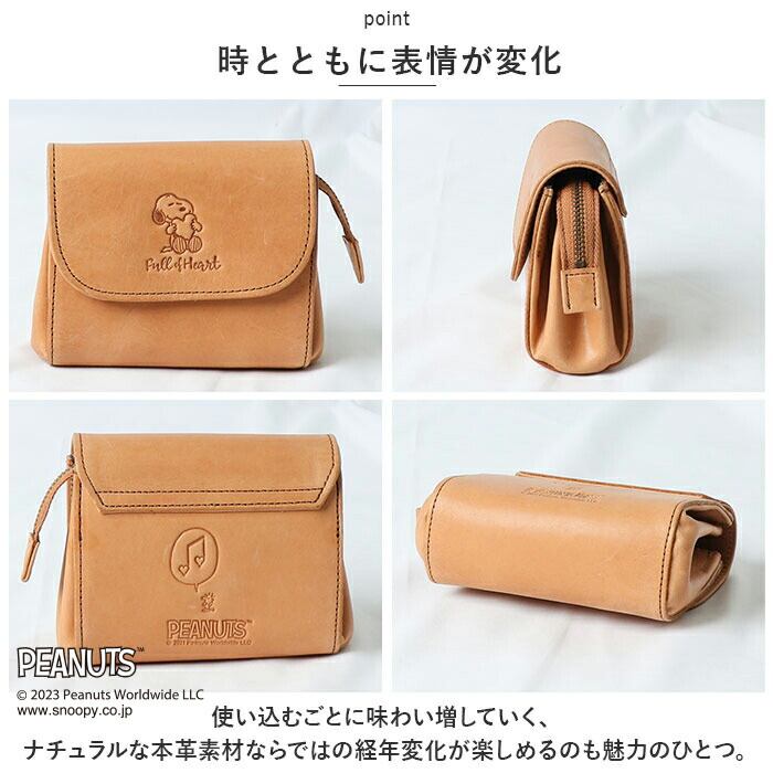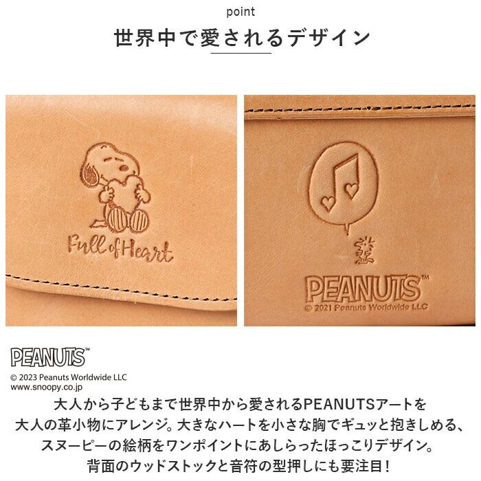 ・大人から子どもまで世界中から愛されるPEANUTSアートを大人の革小物にアレンジ。大きなハートを小さな胸でギュッと抱きしめる、スヌーピーの絵柄をワンポイントにあしらったほっこりデザイン。背面のウッドストックと音符の型押しにも要注目!