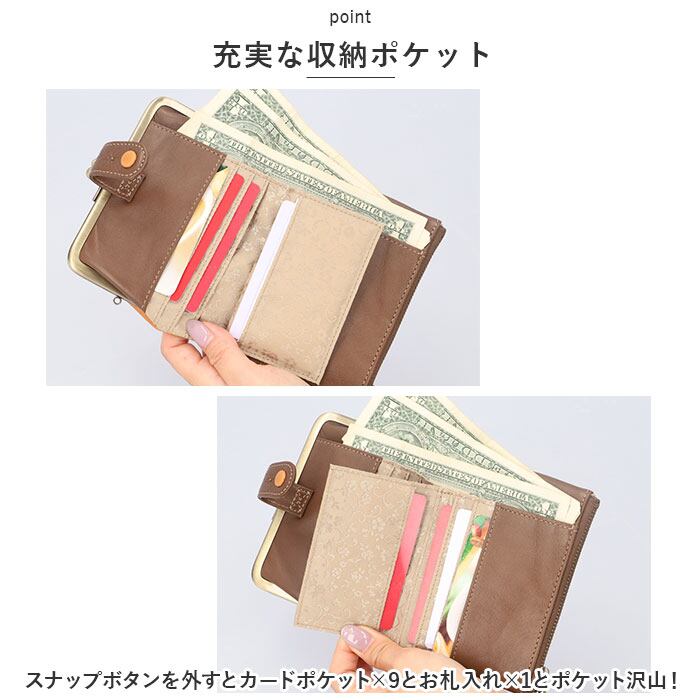 ・お札入れ×1、がま口コインケース×1、カードポケット×11、ファスナーポケット×1