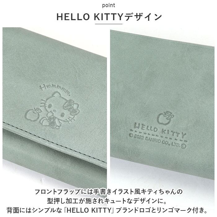 ・フロントフラップには手書きイラスト風キティちゃんの型押し加工が施されキュートなデザインに。
