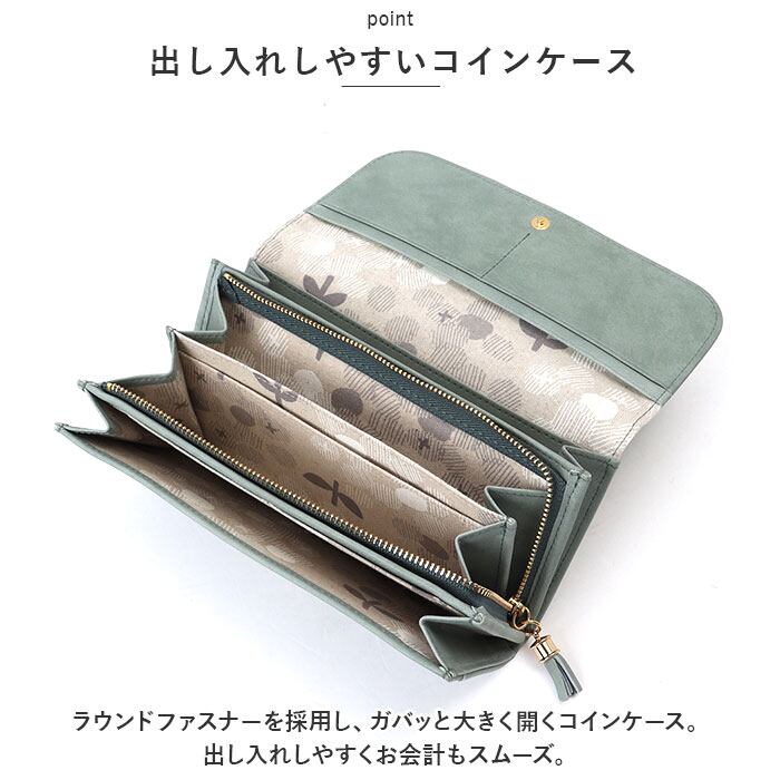 ・ラウンドファスナーを採用し、ガバッと大きく開くコインケース。出し入れしやすくお会計もスムーズ。