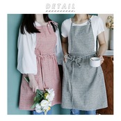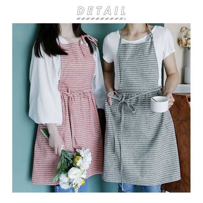 ・大人女子にぴったりな可愛さ!ストライプ生地が爽やかな、コットンリネン素材のエプロンが登場!
