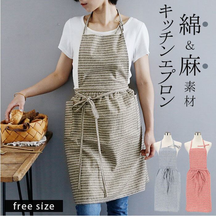 キッチンエプロン ストライプ コットンリネンエプロン a20071001
