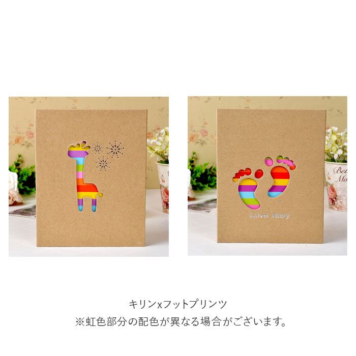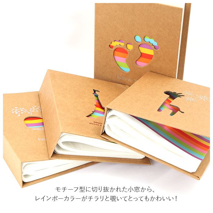 ・モチーフ型に切り抜かれた小窓から、レインボーカラーがチラリと覗いてとってもかわいい!シルバーの箔押しもアクセントに。