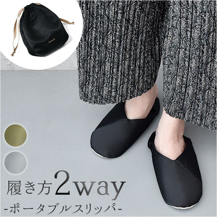・よそ行きの服装に上品に映える、すっきりと洗練されたデザイン。シーンに合わせて履き方二通り!「notch-ノッチ- ポータブルスリッパ」が新登場!