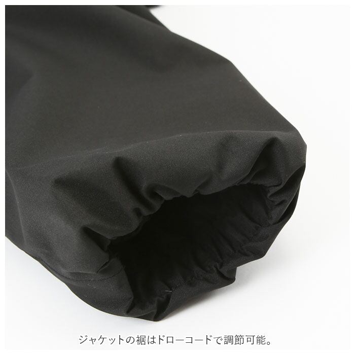 ・ジャケットの裾はドローコードで調節可能。背中をかがめても腰部分が露出しずらいサイクルカット仕様で、自転車などに乗る時でも冷たい風を防いでくれる◎