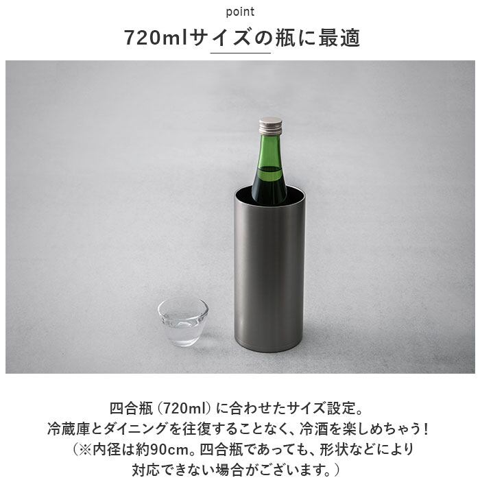 ・四合瓶(720ml)に合わせたサイズ設定。冷蔵庫とダイニングを往復することなく、冷酒を楽しめちゃう!(※内径は約90cm。四合瓶であっても、形状などにより対応できない場合がございます。)