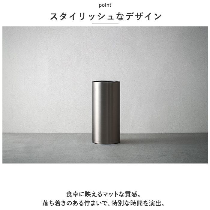 ・本体内側と外側が真空断熱された、ステンレス2重構造タイプ。氷不要で冷やした瓶を入れるだけ、飲み頃温度が長時間持続◎