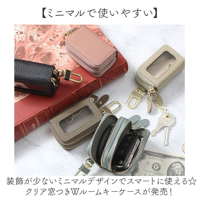 ・装飾が少ないミニマルデザインでスマートに使える☆クリア窓つきWルームキーケースが発売!