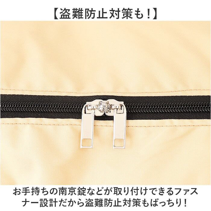 ・お手持ちの南京錠などが取り付けできるファスナー設計だから盗難防止対策もばっちり!