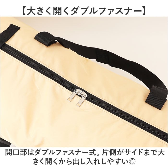 ・開口部はダブルファスナー式。片側がサイドまで大きく開くから出し入れしやすい◎