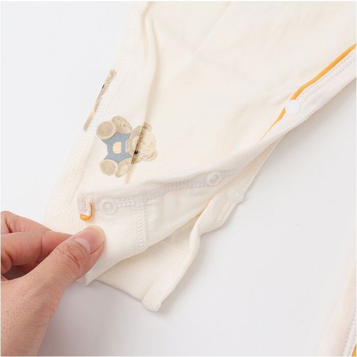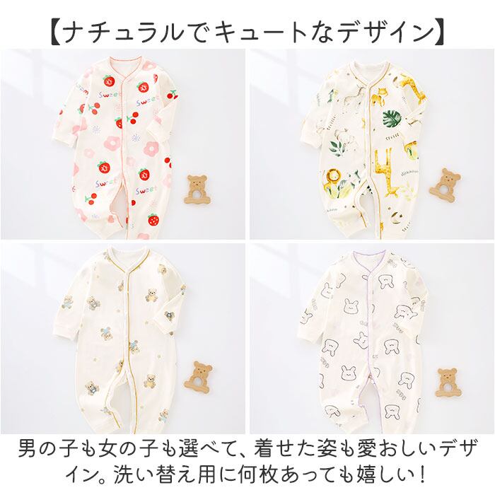 ・襟から股下、足元まで、スナップボタンで簡単着脱。着替やおむつ替えの手間を軽減◎