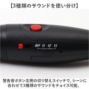・警告音ボタン左側の切り替えスイッチで、シーンに合わせて3種類のサウンドをチョイス可能。