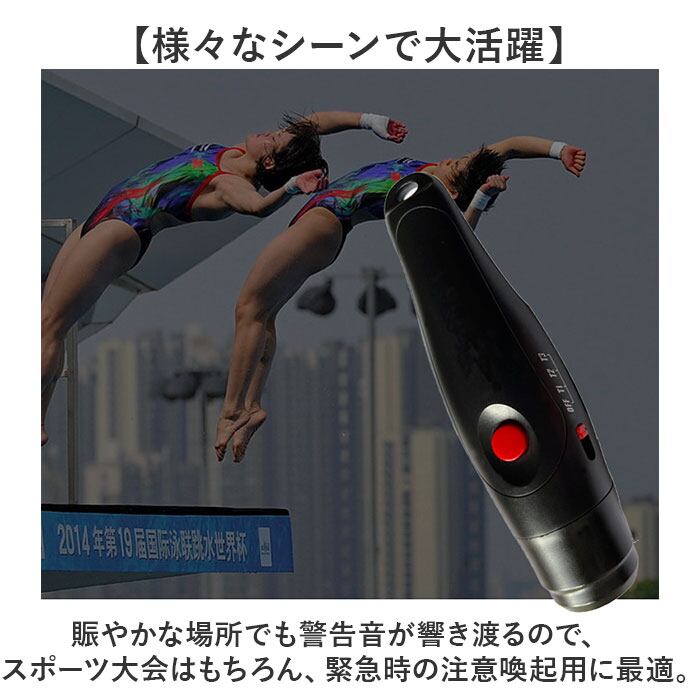 ・賑やかな場所でも警告音が響き渡るので、スポーツ大会はもちろん、緊急時の注意喚起用に最適。