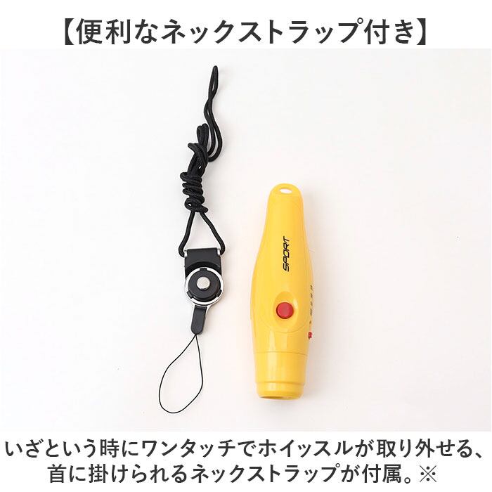 ・いざという時にワンタッチでホイッスルが取り外せる、首に掛けられるネックストラップが付属。
