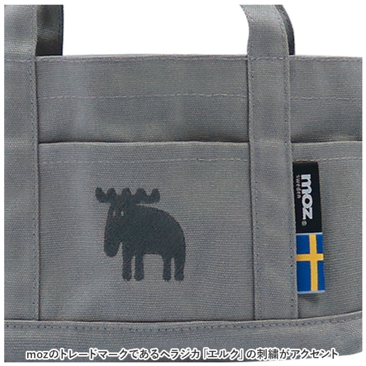 ・どんなシーンにも馴染むナチュラルデザイン。mozのトレードマークであるヘラジカ「エルク」の刺繍がアクセント。
