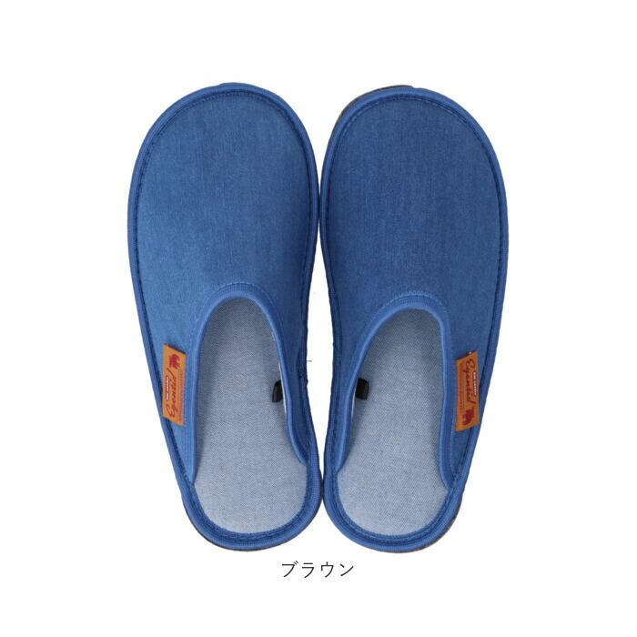 ・足裏部分はスカイブルーデニム、足の甲の当たる内側は肌触りのよいニット生地仕上げ。素足のまま履いても、ふんわり柔らかな履き心地。