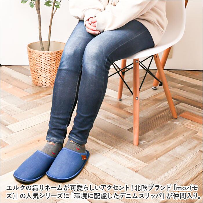 ・エルクの織りネームが可愛らしいアクセント!北欧ブランド「moz(モズ)」の人気シリーズに「環境に配慮したデニムスリッパ」が仲間入り。