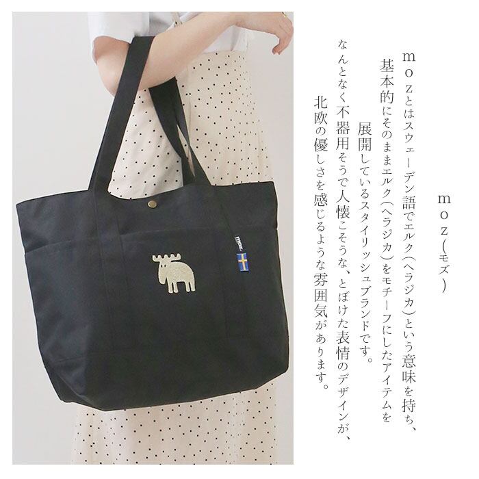 ・金色のエルクの刺繍が印象的なワンポイント!北欧ブランド「moz(モズ)」の人気シリーズに「か・る・いトート(Lサイズ)」が仲間入り。