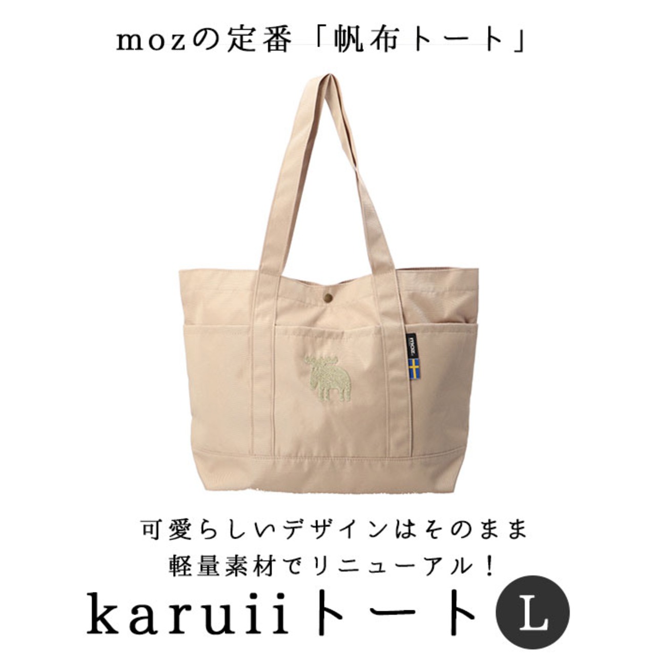 ・絶大な人気を誇るmozの定番「帆布トート」を、可愛らしいデザインはそのまま軽量素材でリニューアル!肩にふんわり掛けられる使い勝手のいいLサイズ。