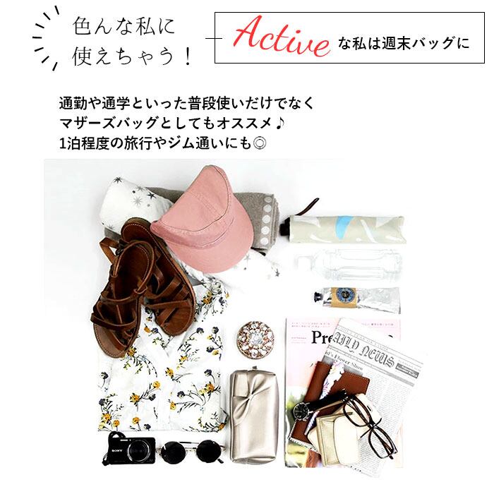 ・スリムに見えて、マチはたっぷり。B4サイズのファイルや、1泊2日程度の衣類やトラベルグッズもラクラク収納できるビッグサイズ。