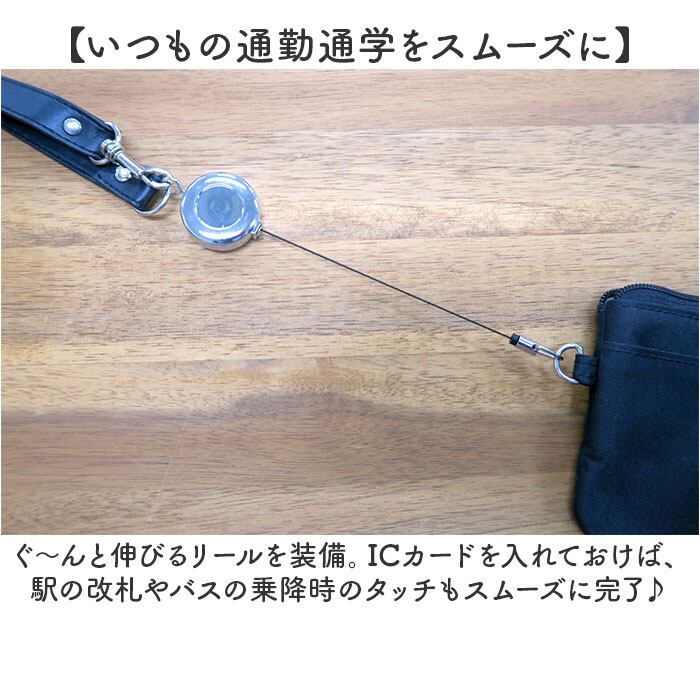 ・ぐ~んと伸びるリールを装備。ICカードを入れておけば、駅の改札やバスの乗降時のタッチもスムーズに完了♪