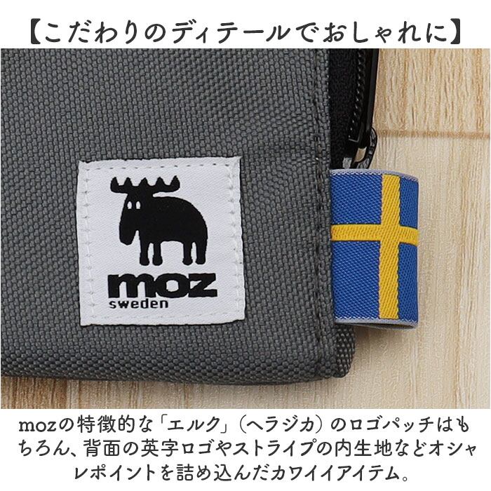 ・mozの特徴的な「エルク」(ヘラジカ)のロゴパッチはもちろん、背面の英字ロゴやストライプの内生地などオシャレポイントを詰め込んだカワイイアイテム。