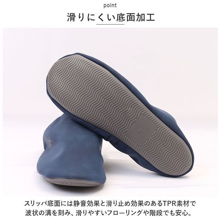 ・スリッパ底面には静音効果と滑り止め効果のあるTPR素材で波状の溝を刻み、滑りやすいフローリングや階段でも安心。