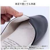 ・足の甲が触れるスリッパ内側は、肌当たりの滑らかなスエード調素材で仕上げ、素足で履いても、優しく包み込まれるような心地よさ。