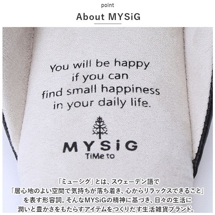 「ミューシグ」とは、スウェーデン語で「居心地のよい空間で気持ちが落ち着き、心からリラックスできること」を表す形容詞。そんなMYSiGの精神に基づき、日々の生活に潤いと豊かさをもたらすアイテムをつくりだす生活雑貨ブランド。