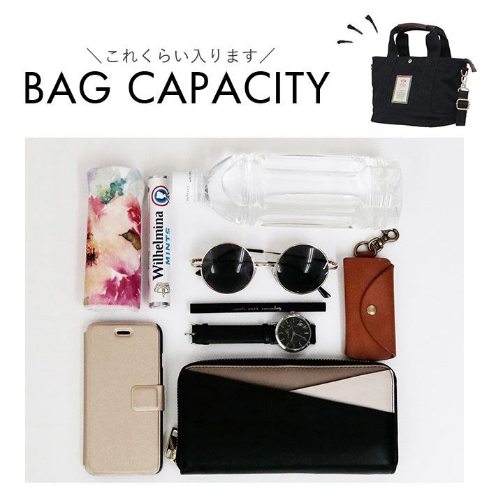 ・お出かけに必要な小物をひとまとめに♪長財布、手帳やポーチの収納、ランチトートとして使うのもOK!500mlペットボトルも横向きに収納可能。