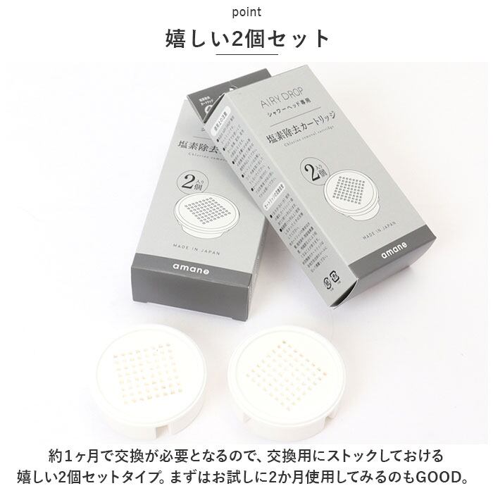 amane シャワーヘッド カートリッジ2個入り 通販 AIRY DROP 浄水シャワーヘッド 天音 あまね 塩素除去 エアリードロップ 浄水シャワー 節水 バス用品 お風呂用品 日本製 工事不要 敏感肌 赤ちゃん 新生活
