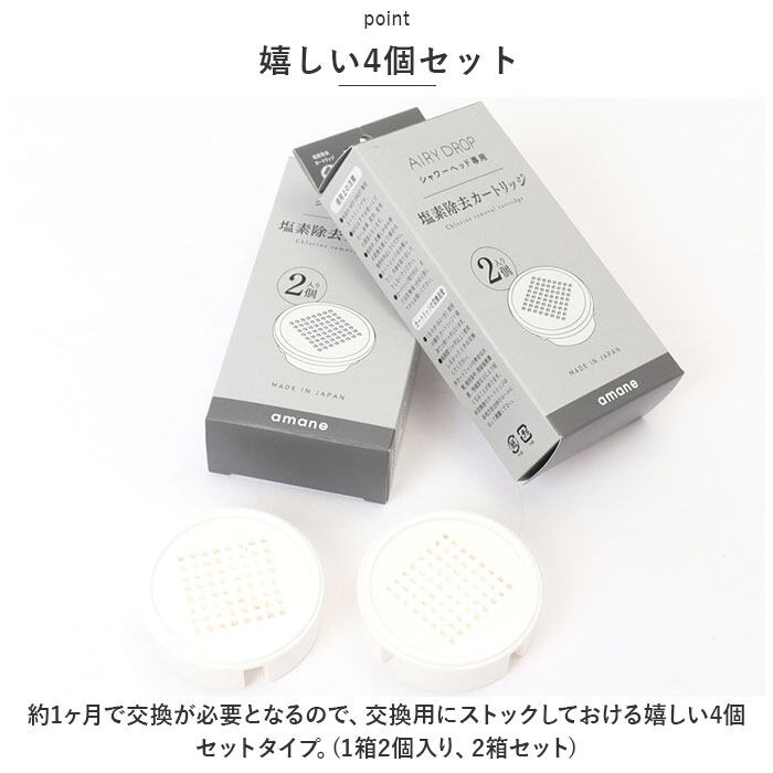amane シャワーヘッド カートリッジ4個入り 通販 AIRY DROP 浄水シャワーヘッド 天音 あまね 塩素除去 エアリードロップ 浄水シャワー 節水 バス用品 お風呂用品 日本製 工事不要 敏感肌 赤ちゃん 新生活
