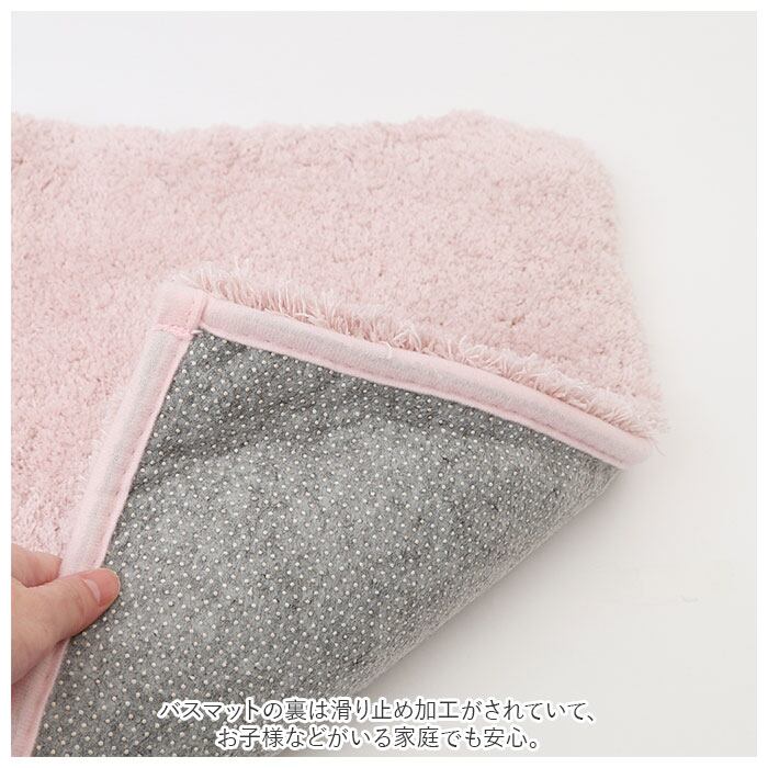・バスマットの裏は滑り止め加工がされていて、お子様などがいる家庭でも安心。