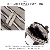 ・開口部はダブルファスナー式で、左右どちらからもオープン。大きく開いて中身が見やすく、出し入れもラクラク。