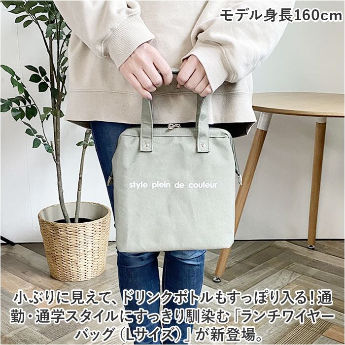 ・小ぶりに見えて、ドリンクボトルもすっぽり入る!通勤・通学スタイルにすっきり馴染む「ランチワイヤーバッグ(Lサイズ)」が新登場。