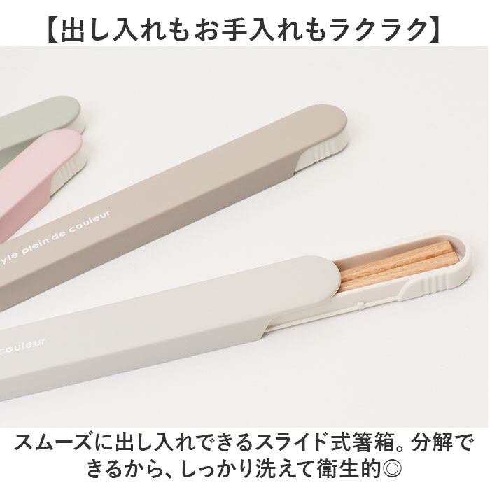 ・スムーズに出し入れできるスライド式箸箱。分解できるから、しっかり洗えて衛生的◎